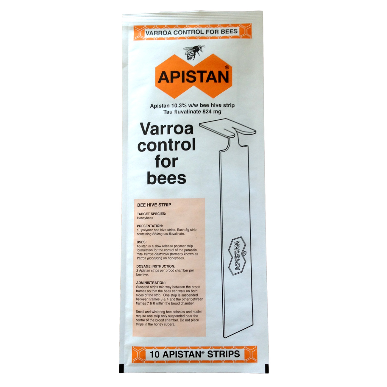 Апистан необходимо использовать весной и осенью однократно, из расчёта 1-2 полоски на гнездовые рамки в количестве от 8 до 12 штук. Если семья небольшая (менее 5 рамок), достаточно разместить в улье 1 полоску в самом центре гнезда.
