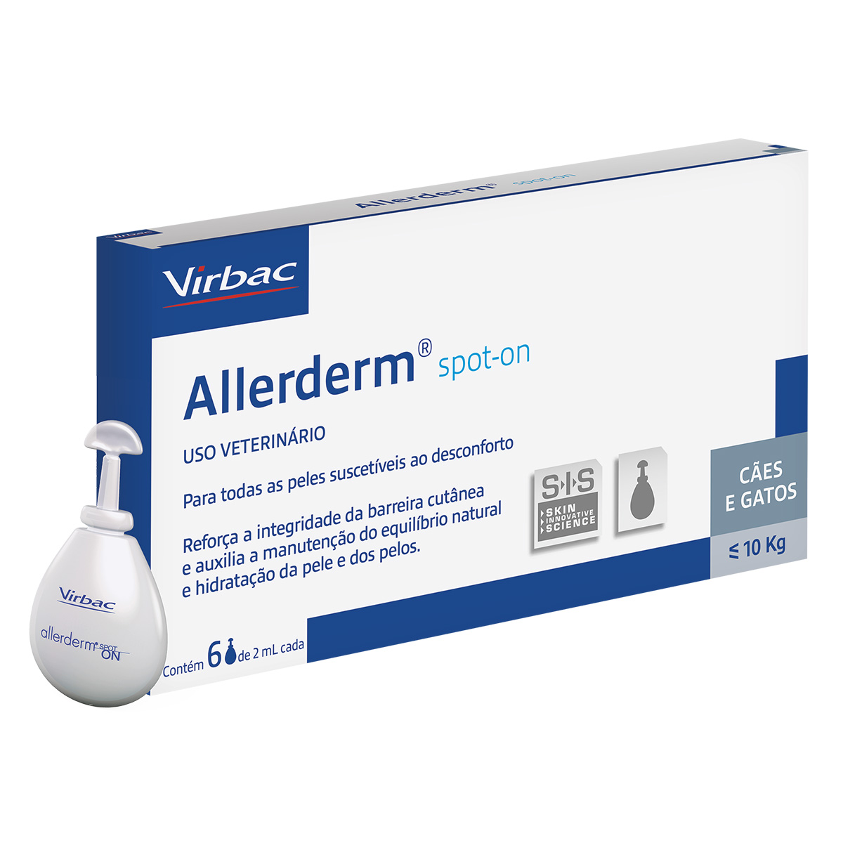 Allerderm spot on / Аллердерм Спот-он 2 мл – препарат в виде раствора для животных с дерматологическими заболеваниями, в частности лекарственное средство лечит атопический дерматит у собак мелких пород и кошек. Возможно применение в профилактических целях для улучшения состояния кожного и шерстяного покрова домашних питомцев. В составе содержится комплекс, состоящий из керамидов, холестерола, ксантановой меди, лауроила лактитата, воды. Лекарство продаётся в картонных упаковках по 6 пипеток в каждой, в одной пипетке – ровно 2мл средства. Препарат имеет специфический ненавязчивый запах, по цвету – полностью прозрачный.